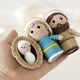 В набор входят 4 предмета: Мария, Иосиф, младенец Иисус и ясли/ кроватка.