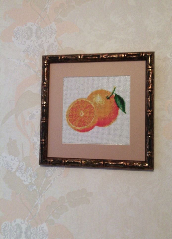 Картина выполнена в алмазной технике. Квадратный алмаз, полная выкладка. размер изображения 20х20см. оформлена в багетную раму с паспарту. Без стекла, покрыта акриловым лаком. Отлично смотрится на кухне. можно купить комплектом из трёх картин, будет дополнительная скидка.