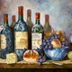 интерьер, кухня, виноград, картина, фрукты, бар, комбинированный, картина для интерьера, дизайн, картина в подарок, натюрморт, картина маслом, живопись, сыр, вино, бутылки, масло, бокал, красное вино, картина для бара