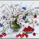 картина Ромашки и черешня вышита крестиком. Размер картины 38х30 см.