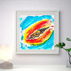The painting "Papaya" is painted on canvas, professional, acrylic paints. All materials are high-quality and eco-friendly. Paints are not subject to fading and retain the brightness of the color for a long time. The size of the painting is 25x25 cm. Any size is possible at the request of the customer.