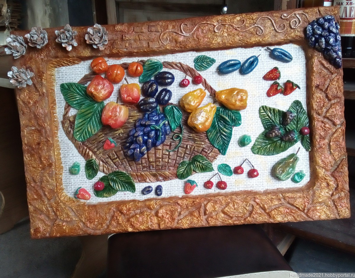 акварельные краски, папье-маше, перламутр, лак защитный, соленое тесто