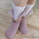Эти мягкие, теплые носочки в деревенском стиле связаны из полушерстяной пряжи. Верх двойной, со вшитым в шов тонким кружевом. Внутренняя часть ажурная. Тонкая перемычка пришита пластиковыми пуговицами "под дерево".