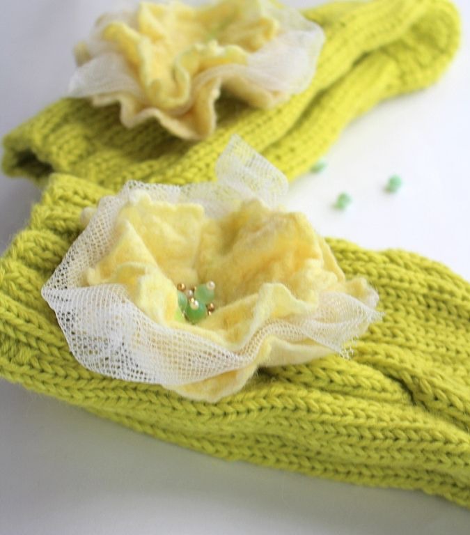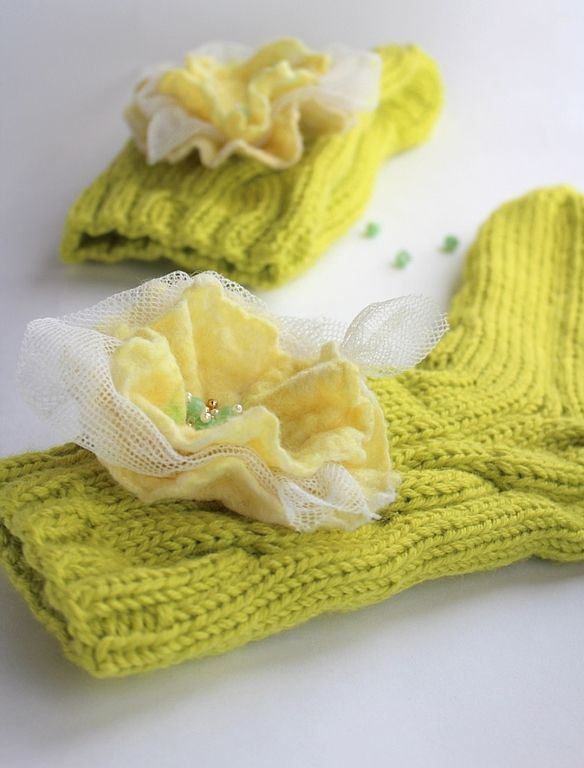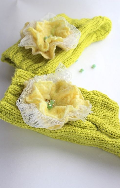 Цветы-броши на булавках, поэтому от их можно легко снять для стирки носков.