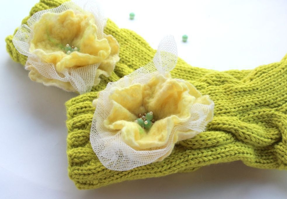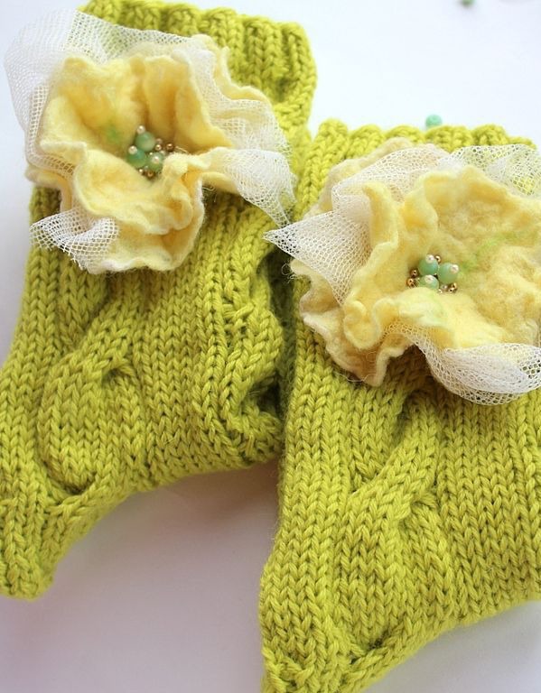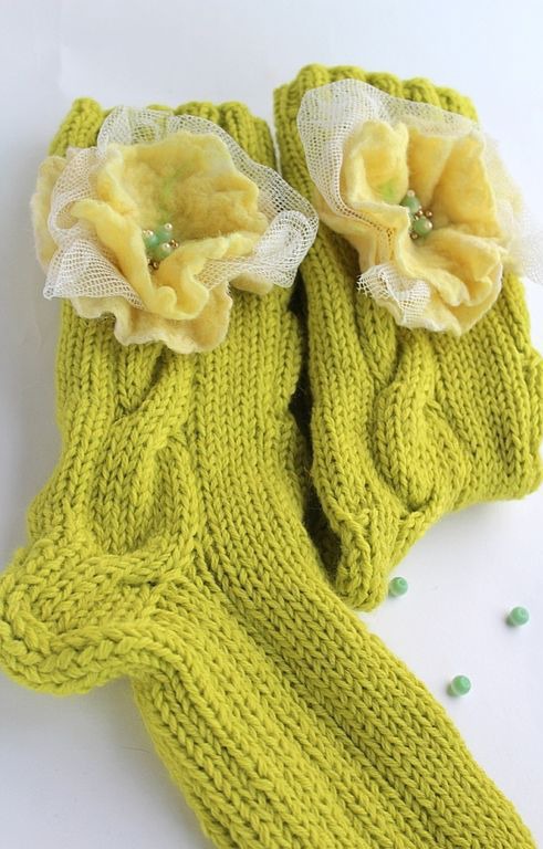 Насладитесь уютом с моими вязаными носками, которые украшены валяными белыми цветами. Мило и оригинально!