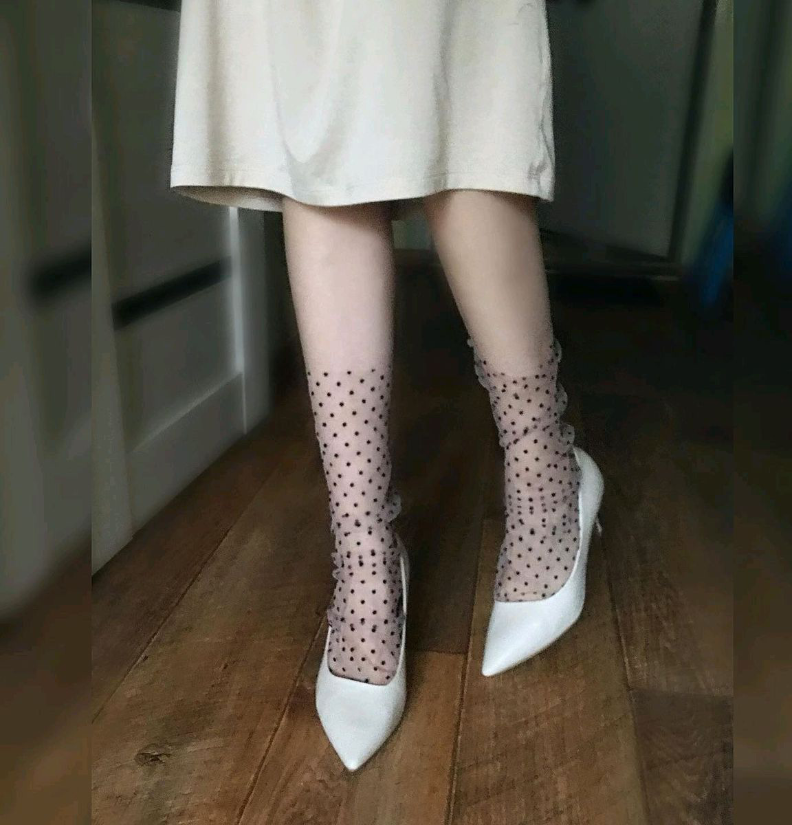 Носочки из мягкого еврофатина телесного цвета в черный горошек. Размер универсальный (36-40). Шью на заказ.
