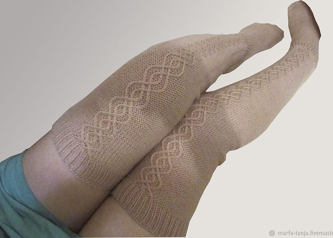 однотонный, шерсть, бежевый, вязание спицами, аксессуары ручной работы, гольфы вязаные, аранские узоры