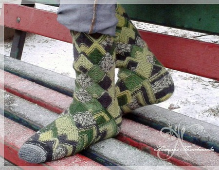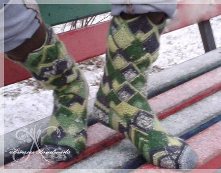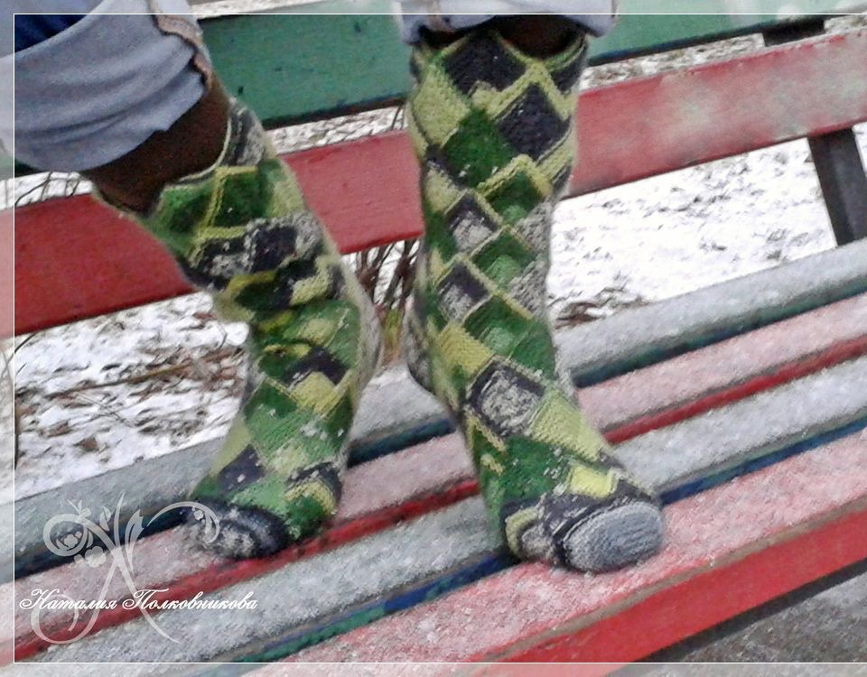 Благородная расцветка и оригинальный узор , при этом теплые и уютные носочки из 100% шерсти.