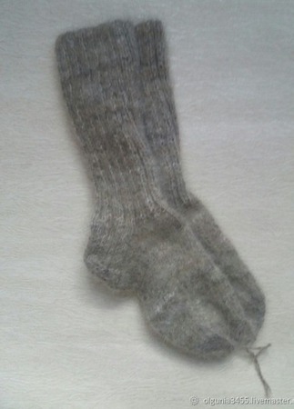 Носки из собачьей шерсти ручного прядения, связаны на спицах очень плотно.