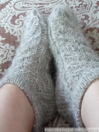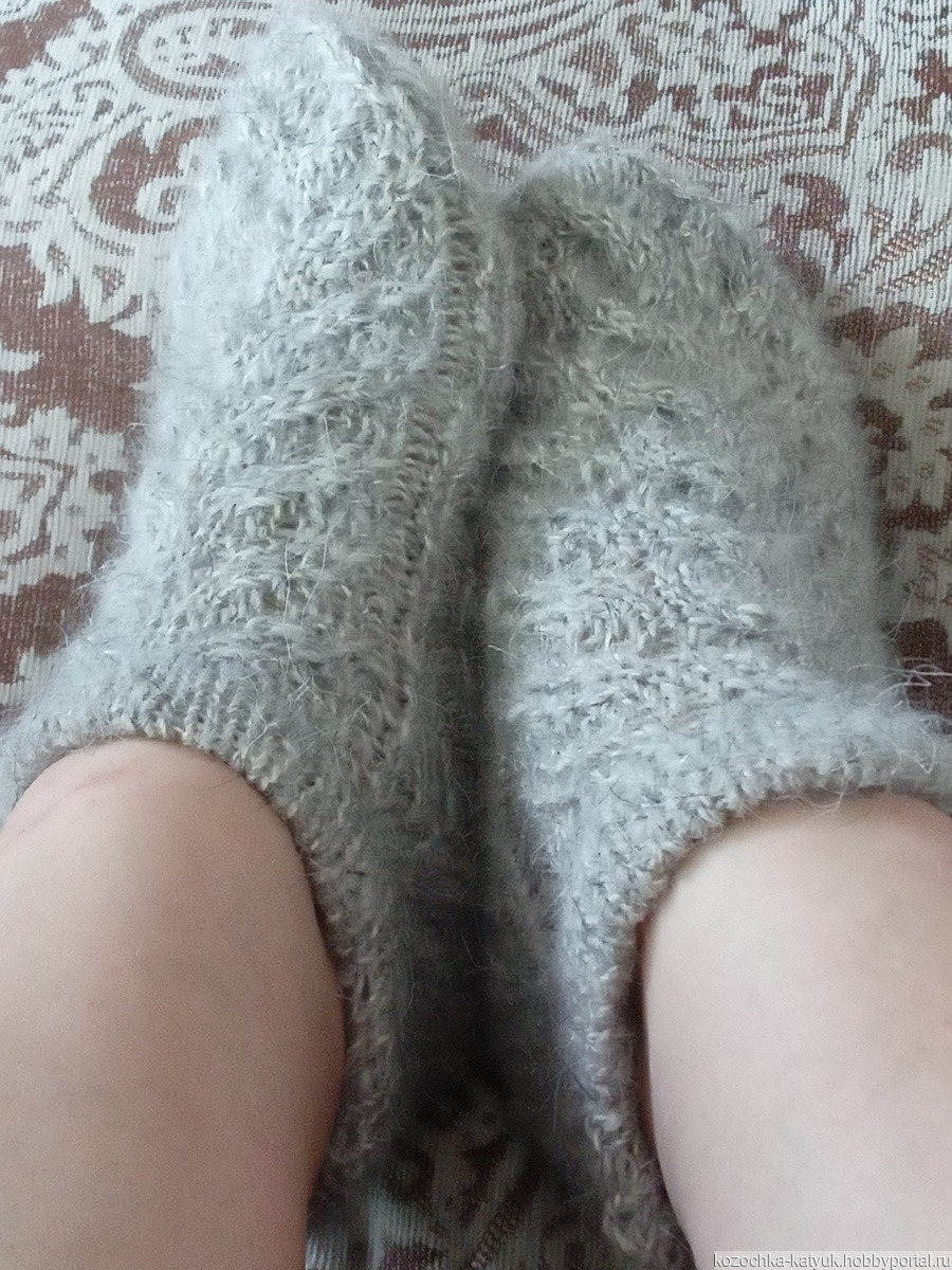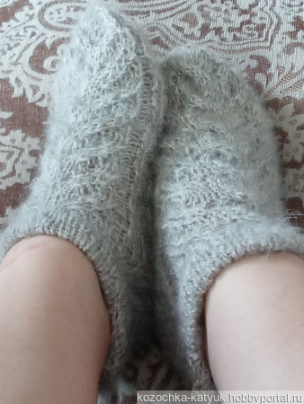 Пух напряден на х/б нить. Связаны носочки вручную на 5 чулочных спицах. Пушиться сразу как начнете носить. По желанию могу на пушить за отдельную плату.