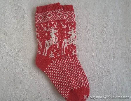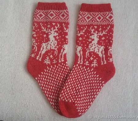 Носки с орнаментом олени связаны на машине из шерсти . Красивые, теплые и комфортные, согреют ваши ножки. Пяточка и мысок двойные за счет переплетения - авторская разработка + добавлена ниточка ПЭ для прочности. аккуратный шов не причиняет неудобство.