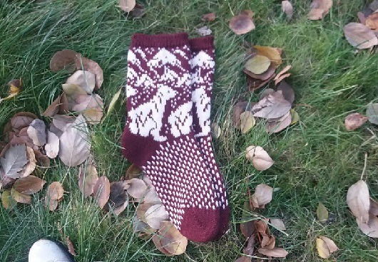 Носки с орнаментом мишки связаны на машине из 100 % шерсти . Красивые, теплые и комфортные, согреют ваши ножки. Пяточка и мысок двойные за счет переплетения - авторская разработка + добавлена ниточка ПЭ для прочности. аккуратный шов не причиняет неудобство.