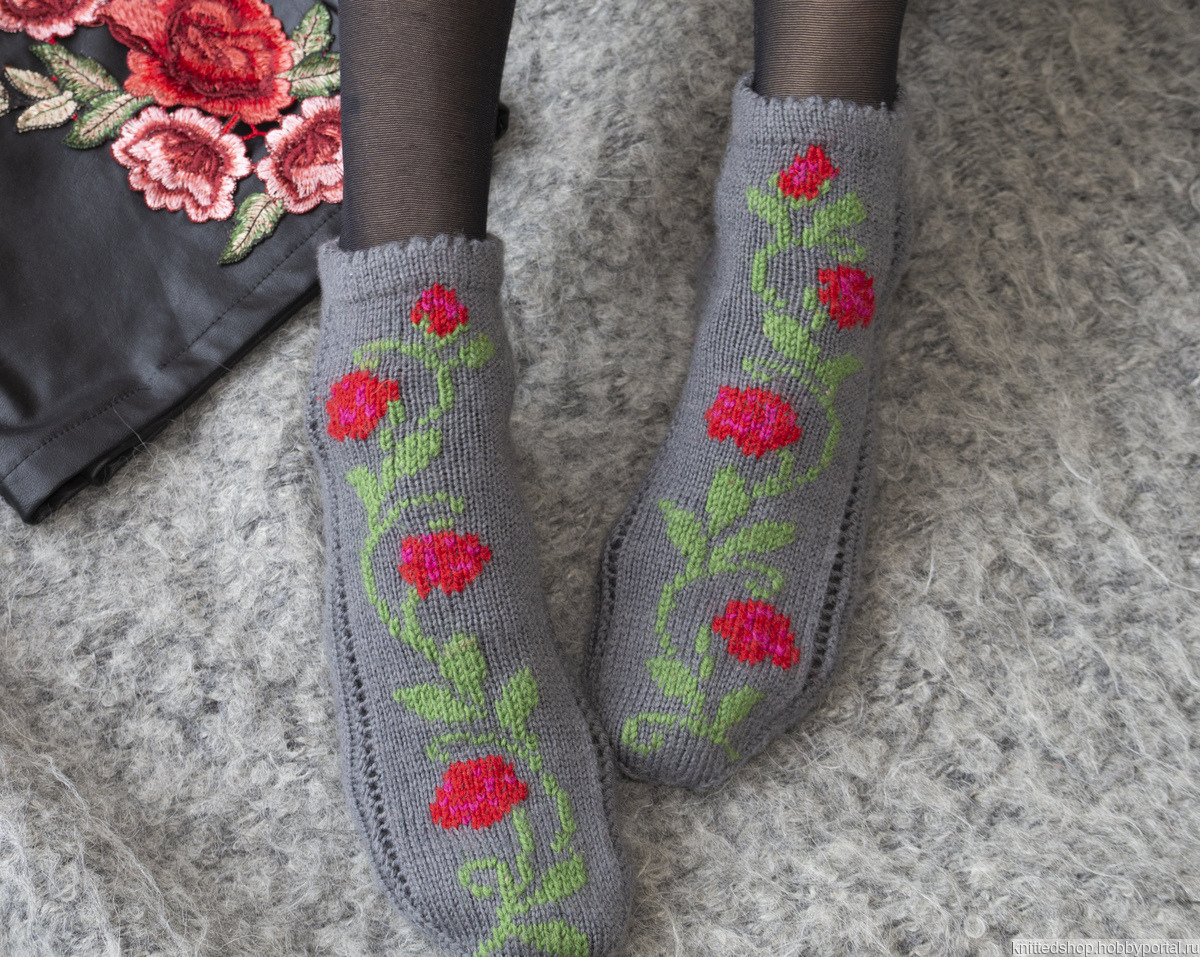 подарок маме, подарок девушке, подарок на 8 марта, носки шерстяные, носки вязаные спицами, носки вязаные, носки с орнаментом, носки теплые, носки ручной работы, носки женские, носки в подарок, подарок на 8 марта маме, носки с розами, подарок на 8 марта жене, носки с вышивкой