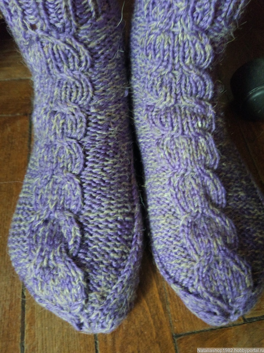 Носки связаны в 2 нити, средней толщины, узор коса.