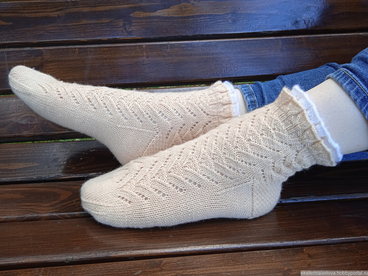ажур, носки, Рюши, носки шерстяные, носки вязаные спицами, ажурные носки, ажурные носочки, носки вязаные, носки женские, носки ажурные, Носки женские ручной работы, Рюши спицами