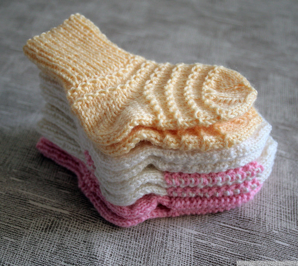 Продам детские носочки. Связаны из пряжи Пехорка Детский каприз. Состав пряжи 50% шерсть мериноса, 50% микроофибра. Носочки мягкие, не колятся. Резинка суперэластичная, хорошо тянется. Не стягивает даже очень пухленькие ножки малыша, носочки легко надеваются. Цена указана за одну пару.