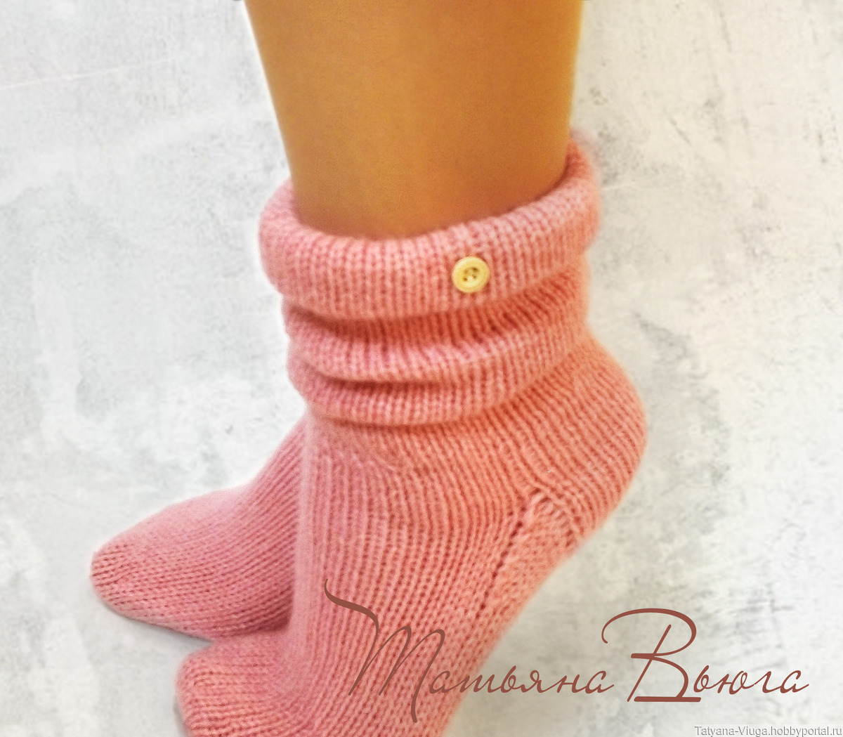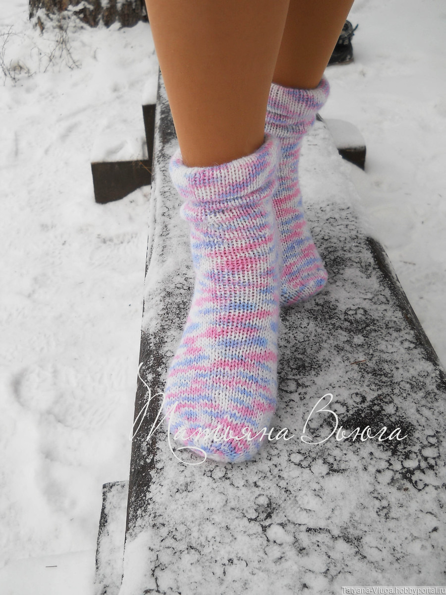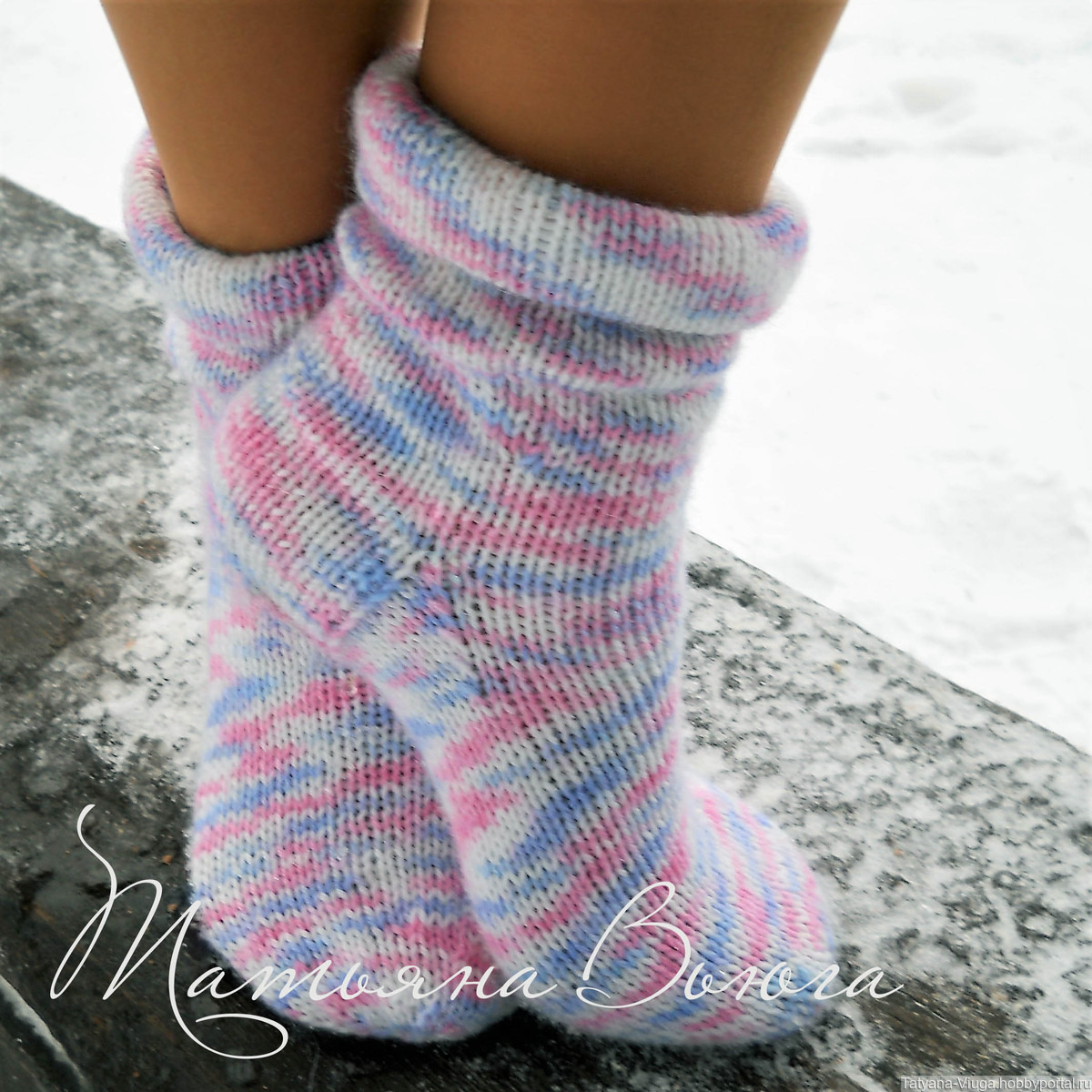 Носки Приходи на меня посмотреть связаны из полушерстяной пряжи. Можно заказать носочки в любой цветовой комбинации и менять их по настроению. Пуговки тоже можно пришить разные, или совсем ничего не пришивать. Все равно будет весело, тепло и мягко.
