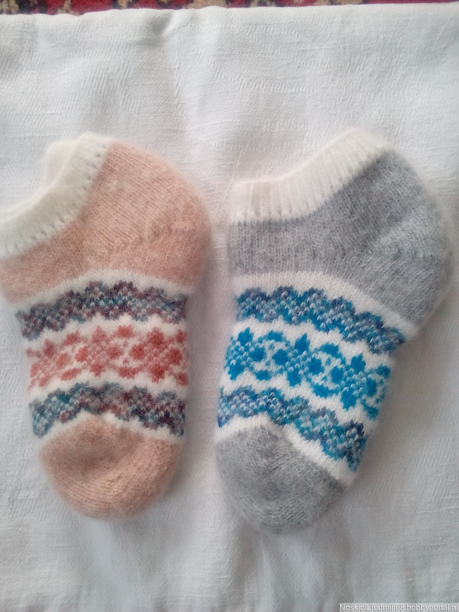 следки женские связаны в две нити, пряжа натуральная ангорка
