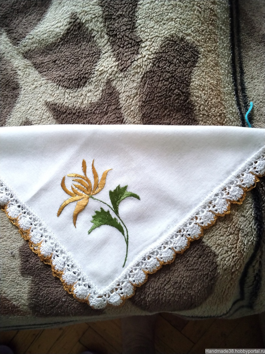 подарок, платочек носовой, салфетка вышитая, платочек вышитый, платочек кружевной