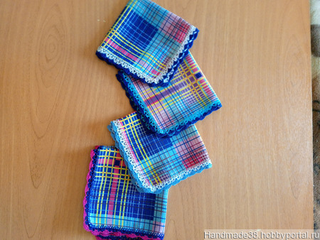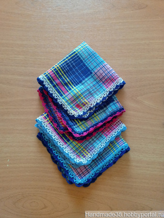 Платочки ситцевые с кружевом. В наличии 4 шт.Цена указана за 1 платок. Размер 27х27см. В наличии имеются и другие ситцевые платочки, см. магазин.Работа готова к продаже. Доставка:самовывоз из Люберец или отправка почтой после предоплаты(цена+почт. расходы).
