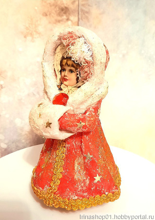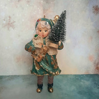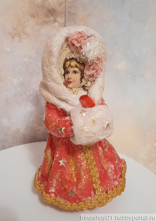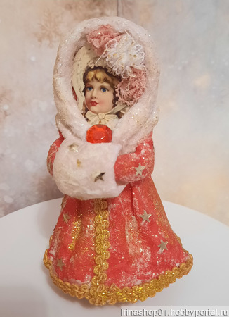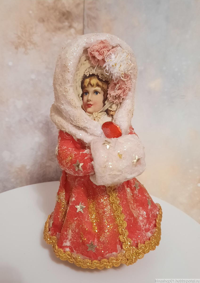 Ватная ёлочная игрушка сделана из хлопковой и цветной льняной ваты. Личико викрианская вырубка. Игрушка покрыта акриловым лаком.