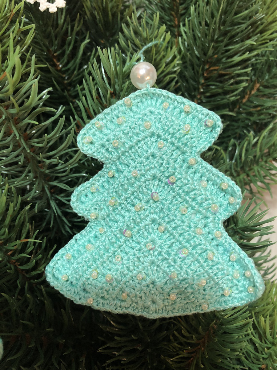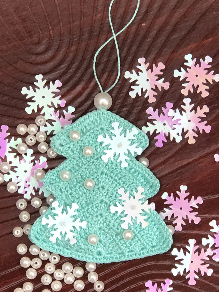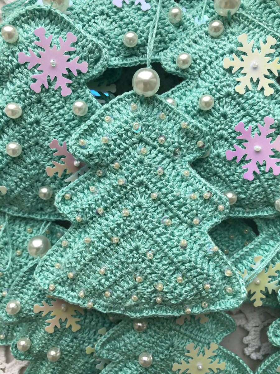 Елочка связана крючком из хлопковых ниток, расшита бисером и пайетками. Размеры 9х9см. Прекрасная альтернатива стеклянным игрушкам. Предлагаю использовать как елочное украшение , украшение для интерьера, в качестве презента коллеге или подруге, как дополнение оформления подарка или как саше если предварительно нанести эфирное масло. В наличии 12 штук, на заказ свяжу столько сколько Вам необходимо :)