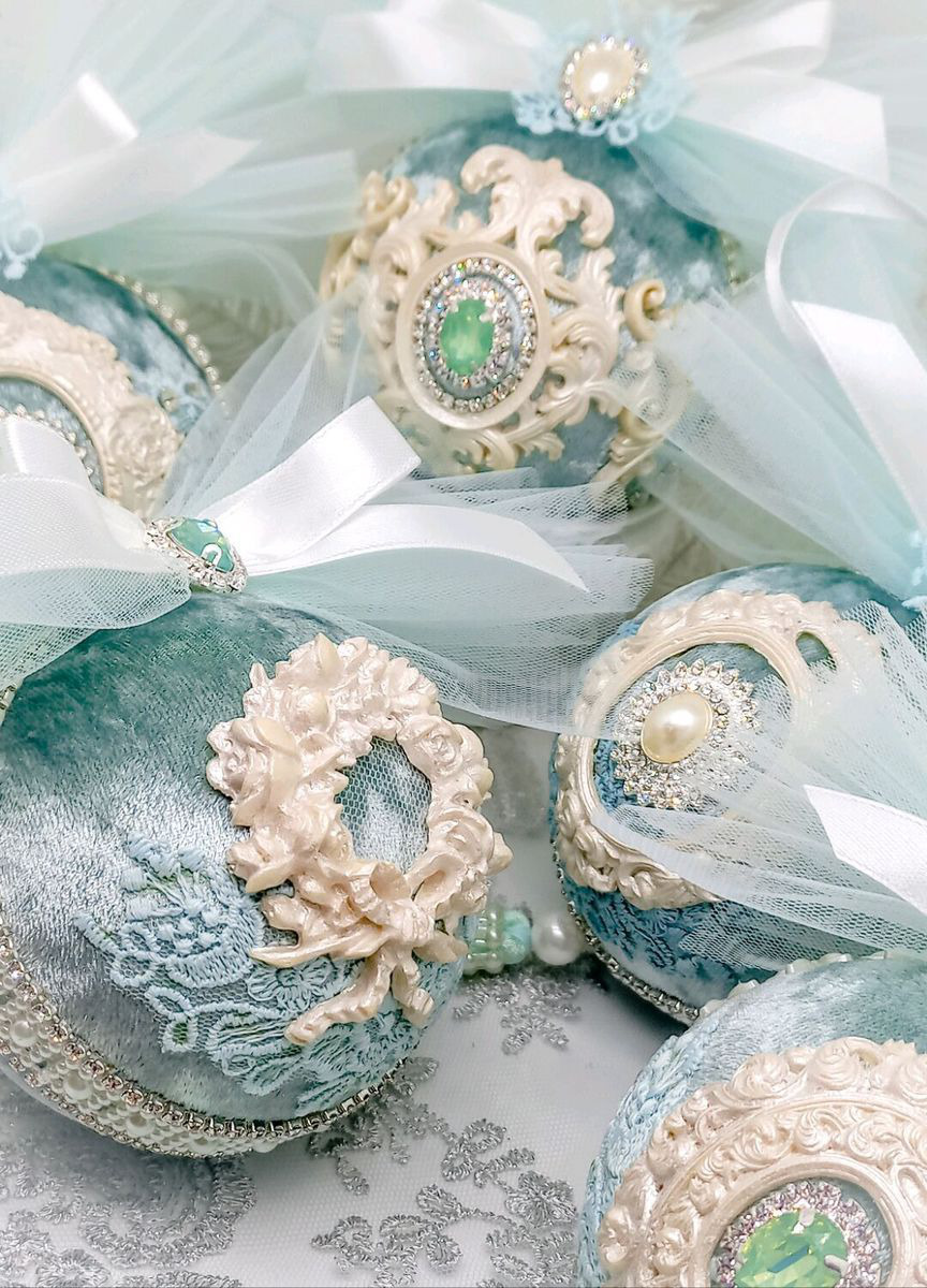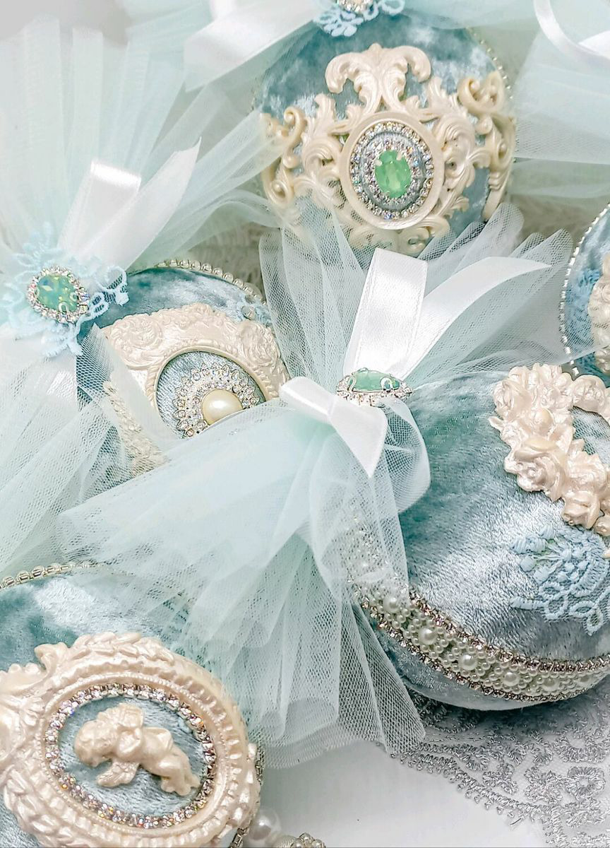 Изысканные шары, достойные ёлки принцесс или других особ благородных кровей.