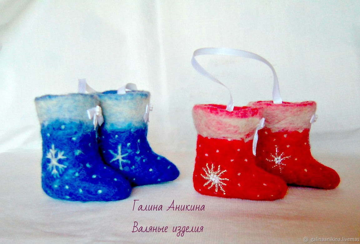 Валеночки новогодние сувенирные валяные - 1 пара;