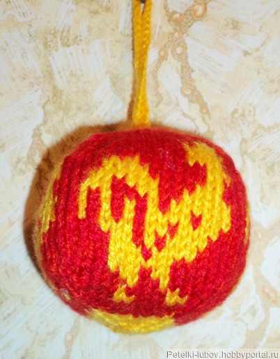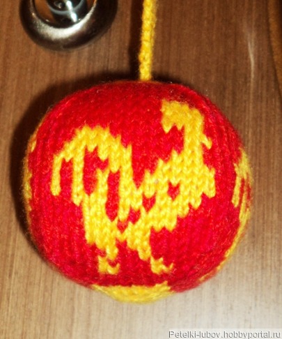 Мягкий елочный шарик Петух связан спицами