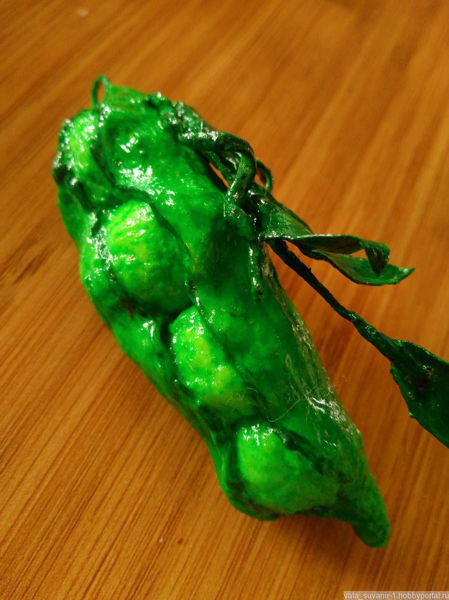 Стручок зелёного горошка с листиком, выполнен из ваты