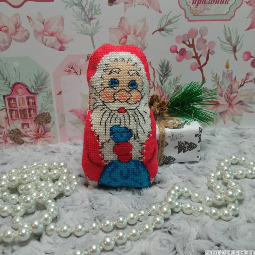 игрушка, дед мороз, игрушка ручной работы, мягкая игрушка, вышивка, вышивка крестом, вышивка на заказ, елочная игрушка, дед мороз ручной работы