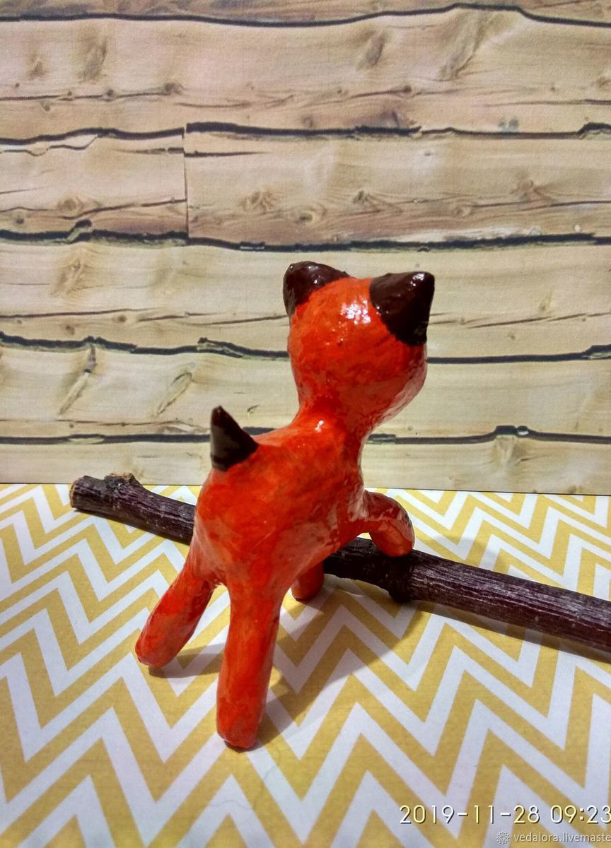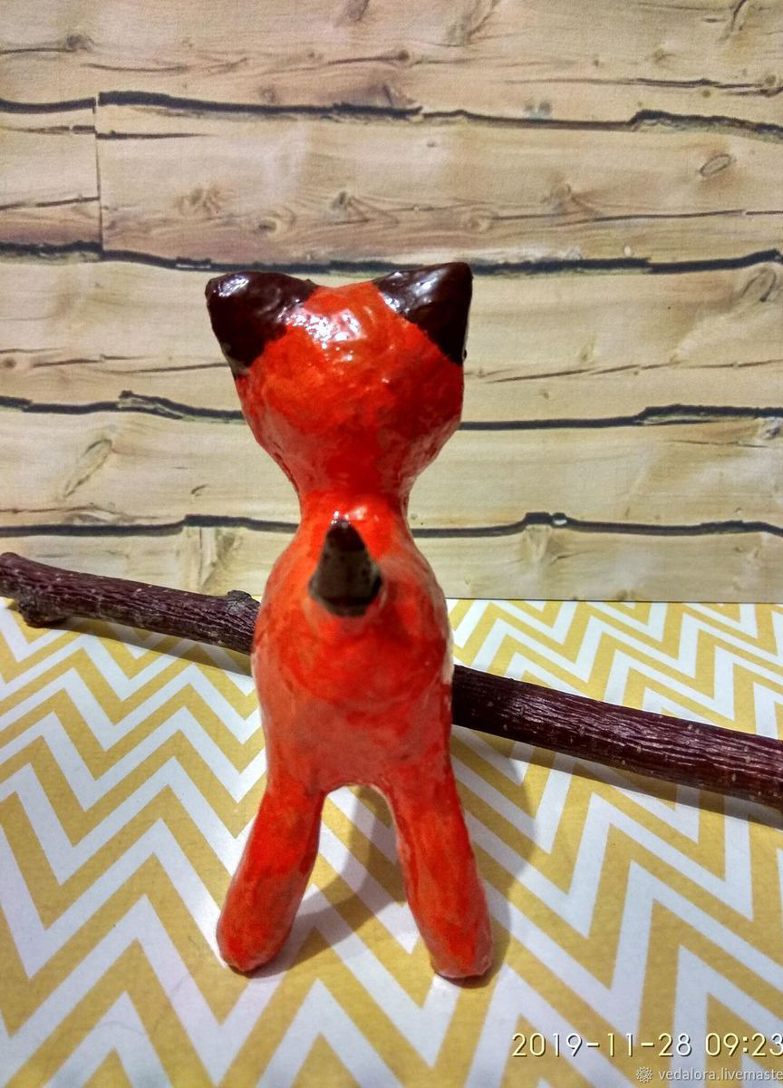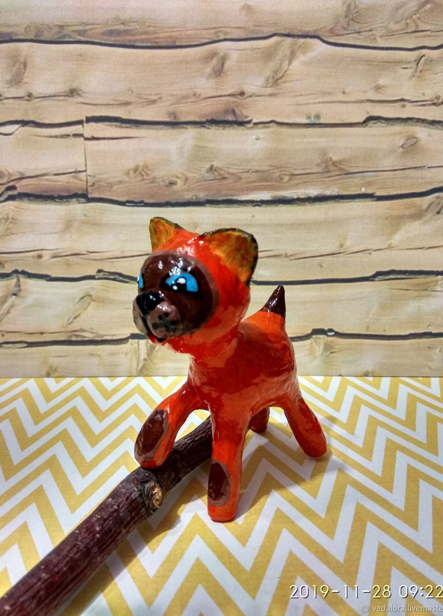 Ёлочная игрушка выполнена из папье маше. Расписан котёнок акриловыми красками. Покрыт лаком.