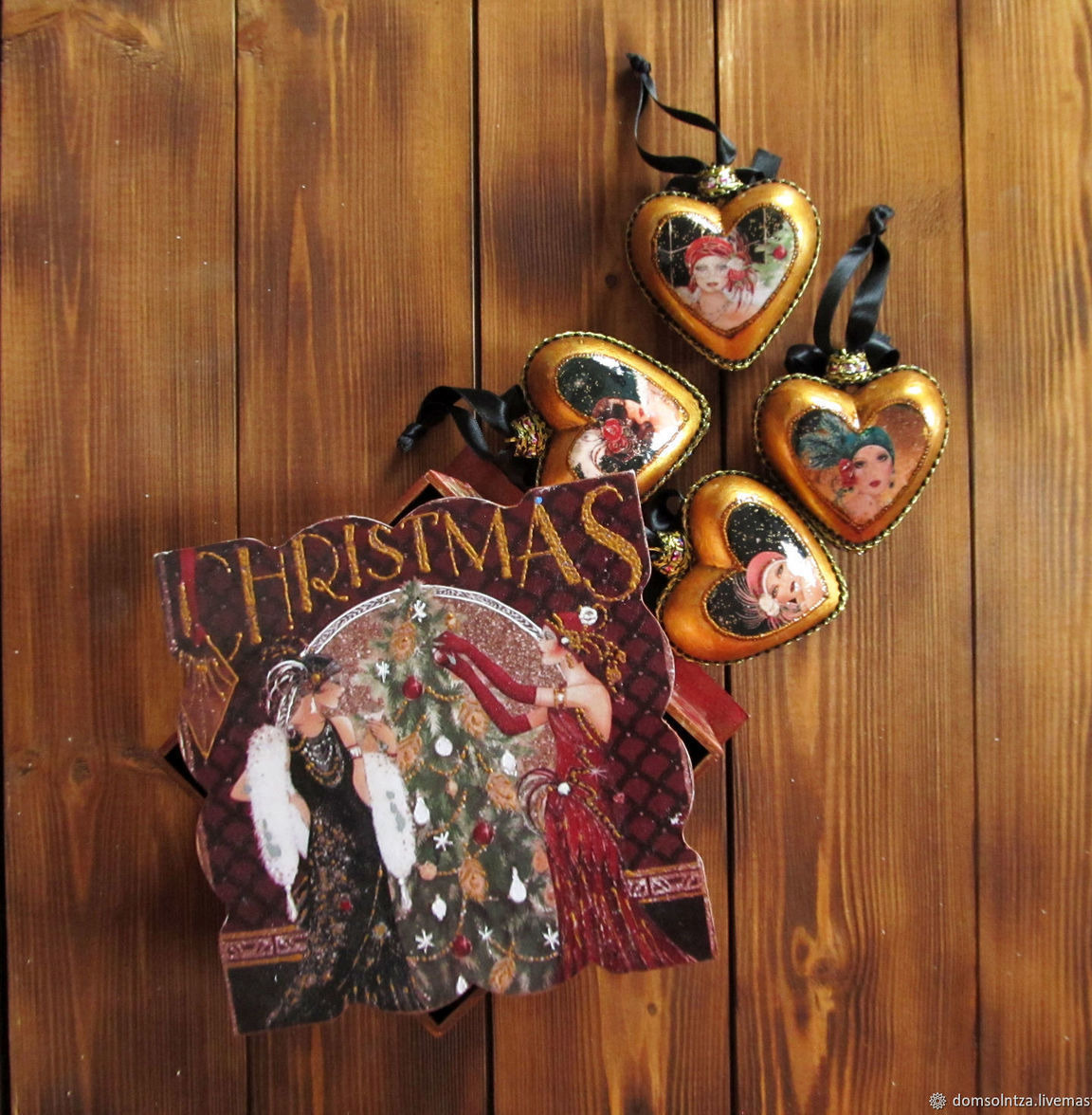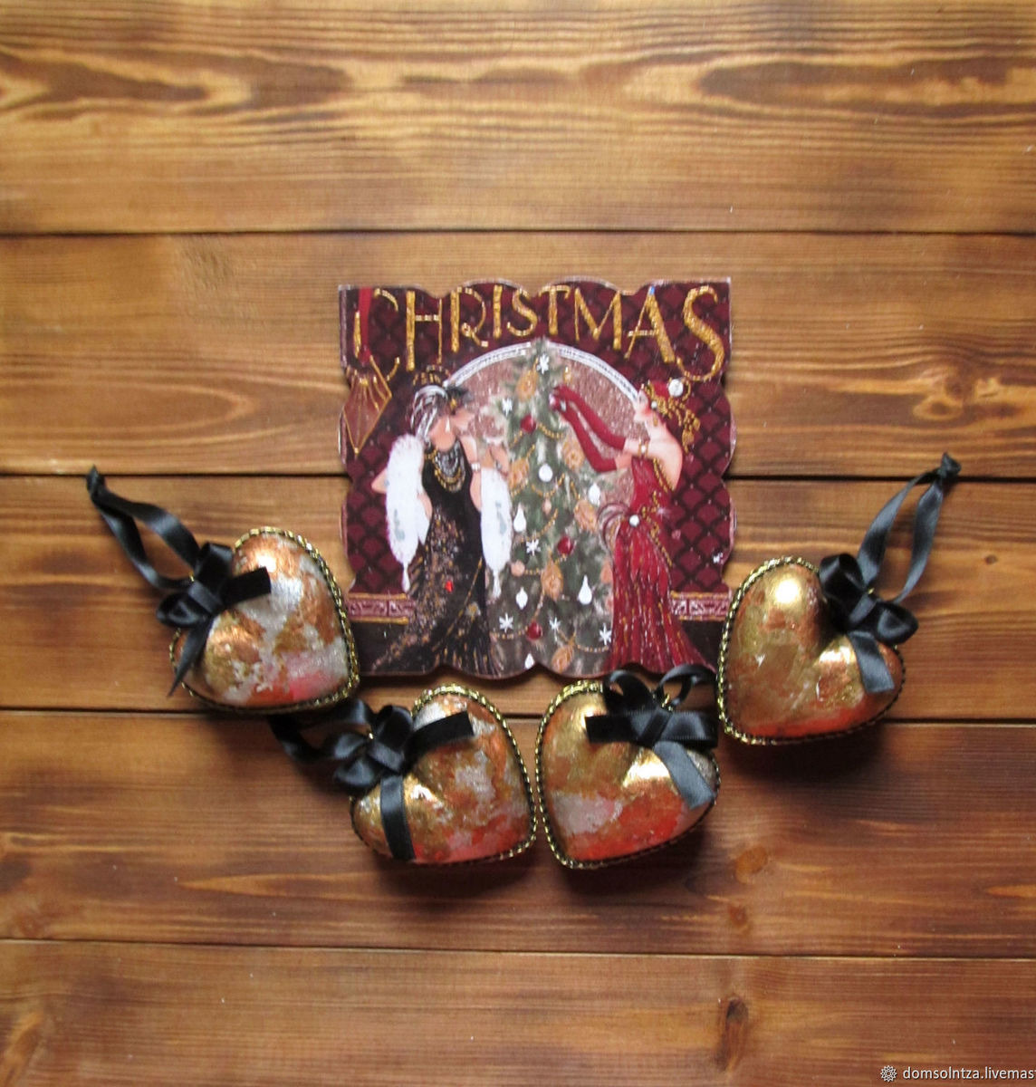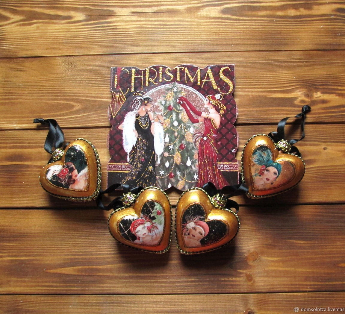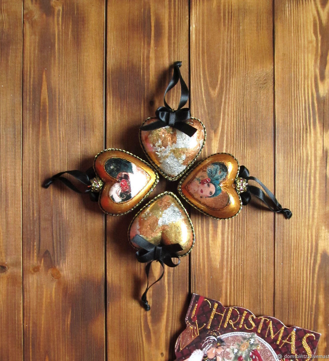 Четыре елочных украшения в виде сердца в яркой подарочной шкатулке, в которой можно хранить как украшения, так и милые женские секретики)))