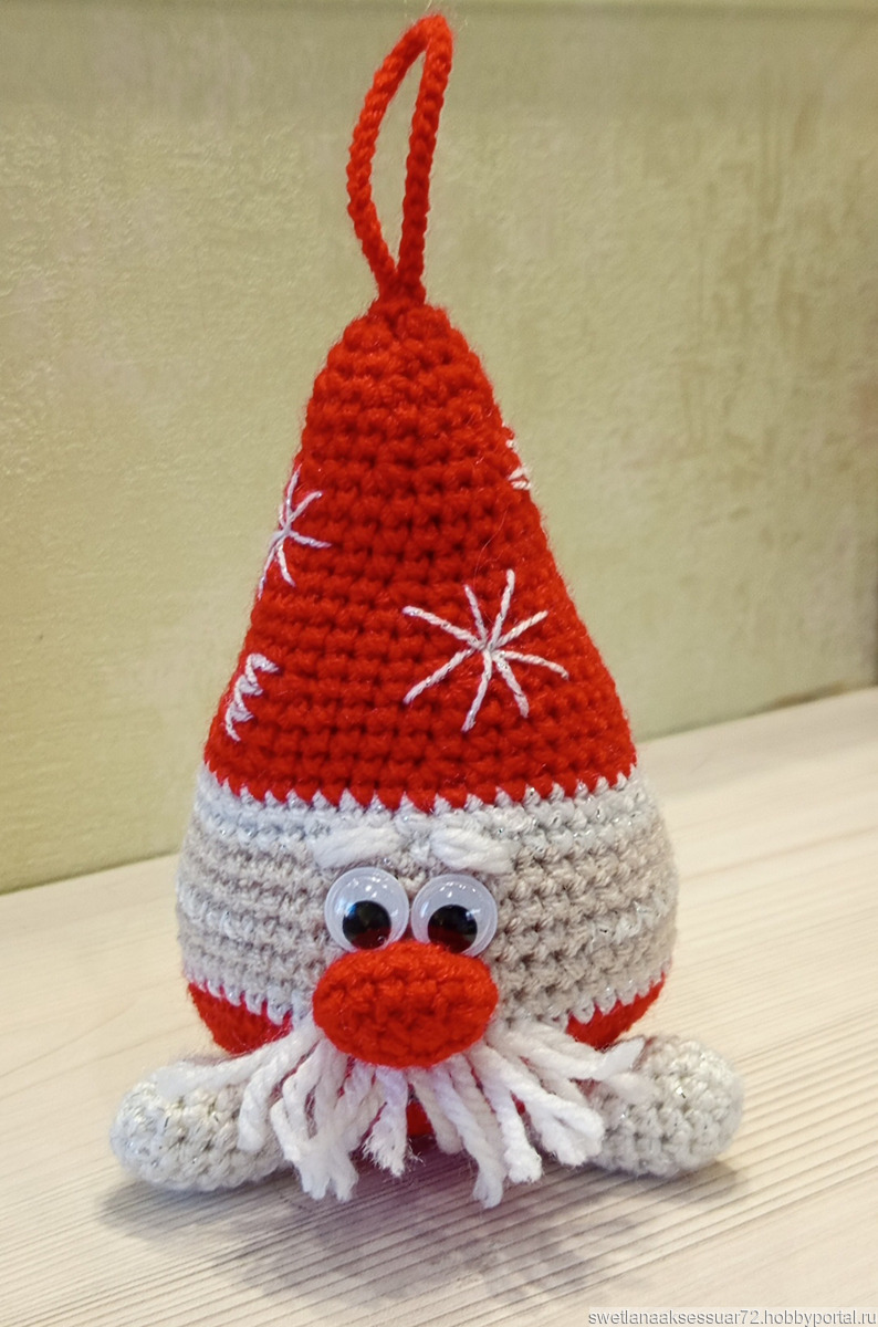 Игрушки изготовлены крючком из акриловой пряжи, наполнитель синтепон. Высота снеговика - 10 см, высота дед мороза - 15 см. Стоимость за 1 шт.