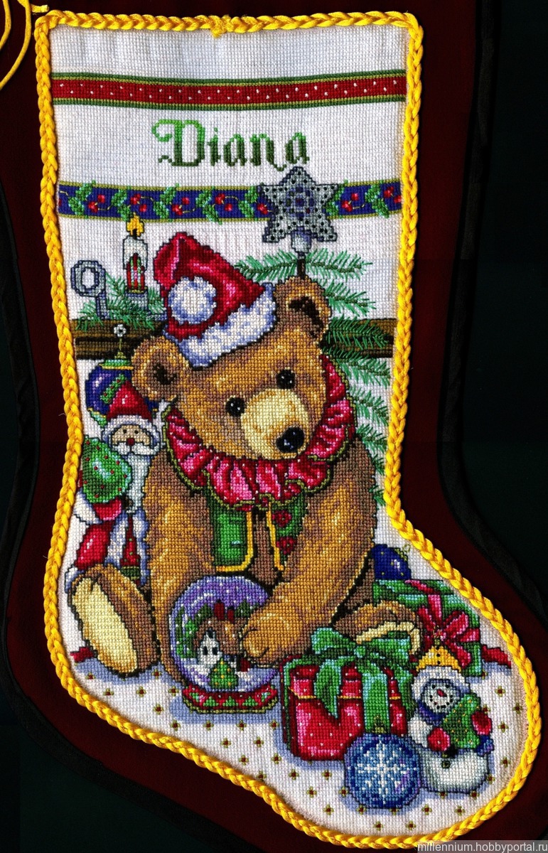 Новогодний сапожок для подарков с петелькой для подвешивания