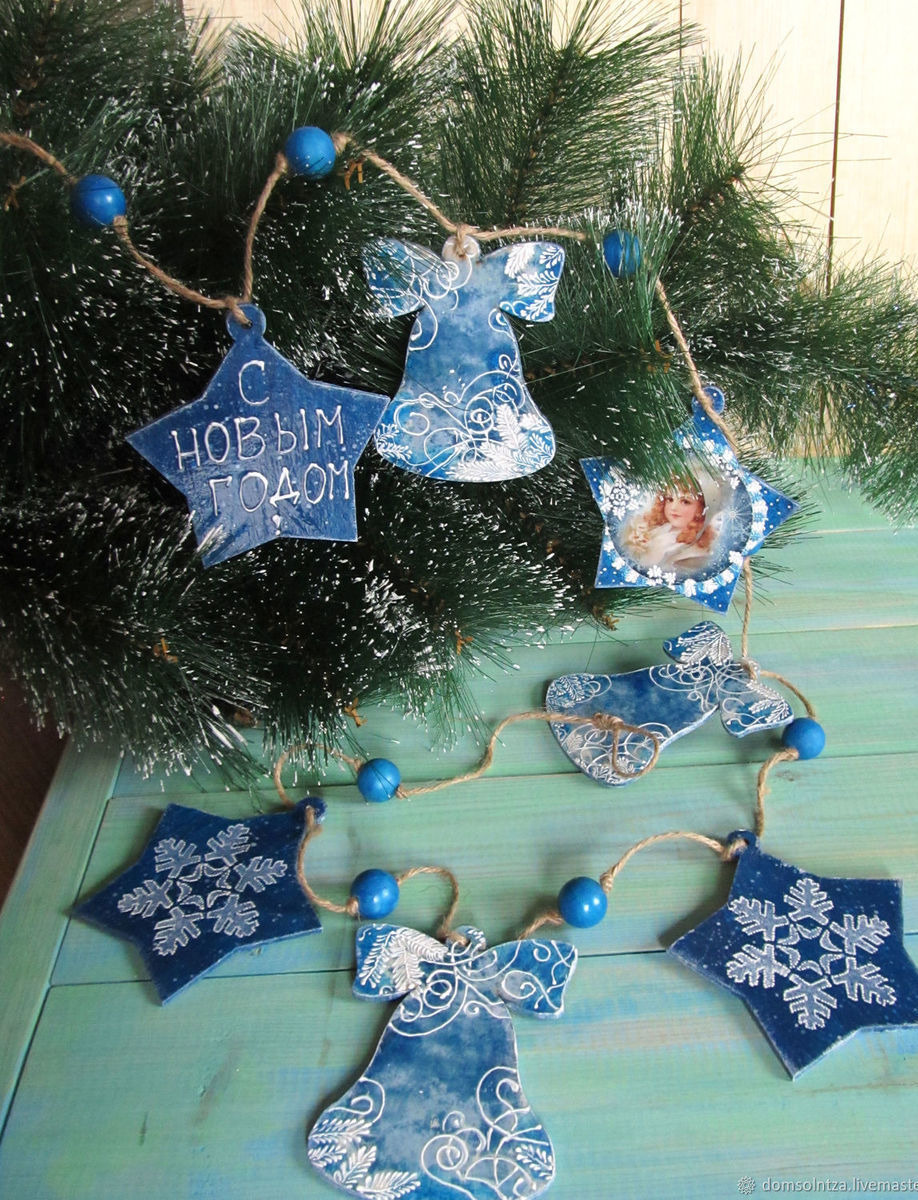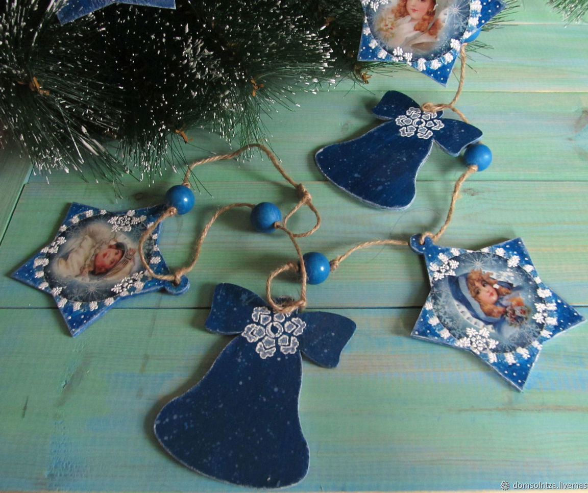 новогодний подарок, подарок на новый год, синий, декупаж, елочное украшение, новогодняя игрушка, новогоднее украшение, новогодний интерьер, гирлянда, новогодняя гирлянда, Новый год 2019, елочная подвеска, черная пятница 2018