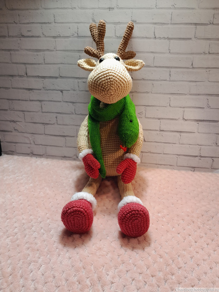 подарок на новый год, купить подарок, новогодний интерьер, символ нового года, змейка, ручной работы, олень игрушка, олень новогодний, олень в подарок, олень крючком, Чародейная _лавка, Олень под елку, Подарок на 2025