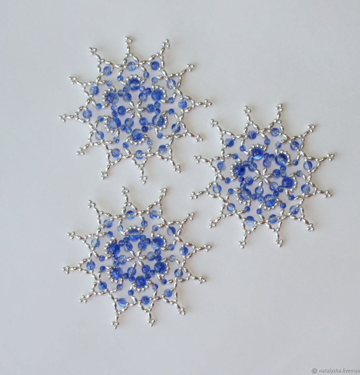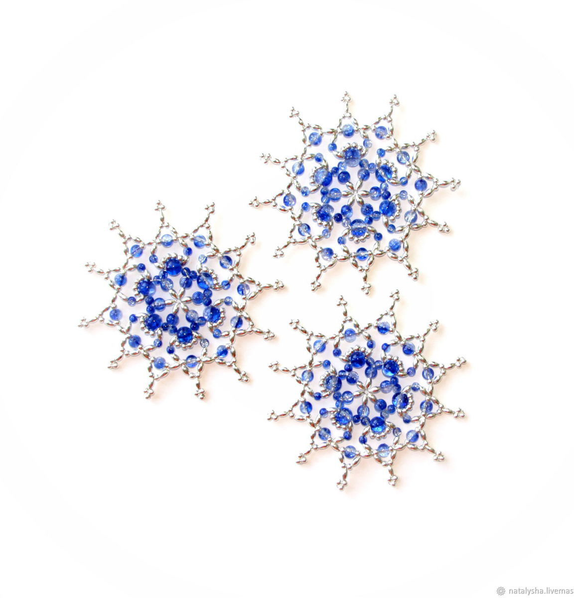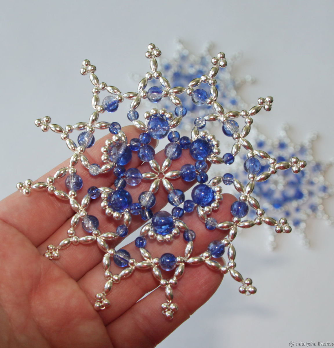новогодний подарок, Новый год, снежинка, синий, звёздочка, новогодние игрушки, Елочные игрушки, елочные украшения, новогодний декор, новогоднее украшение, серебристый, снежинки на елку, украшения на елку, снежинки из бисера, звездочки из бусин, звездочки на елку, снежинки из бусин, купить елочные украшения, купить игрушку на елку, серебристо-синий