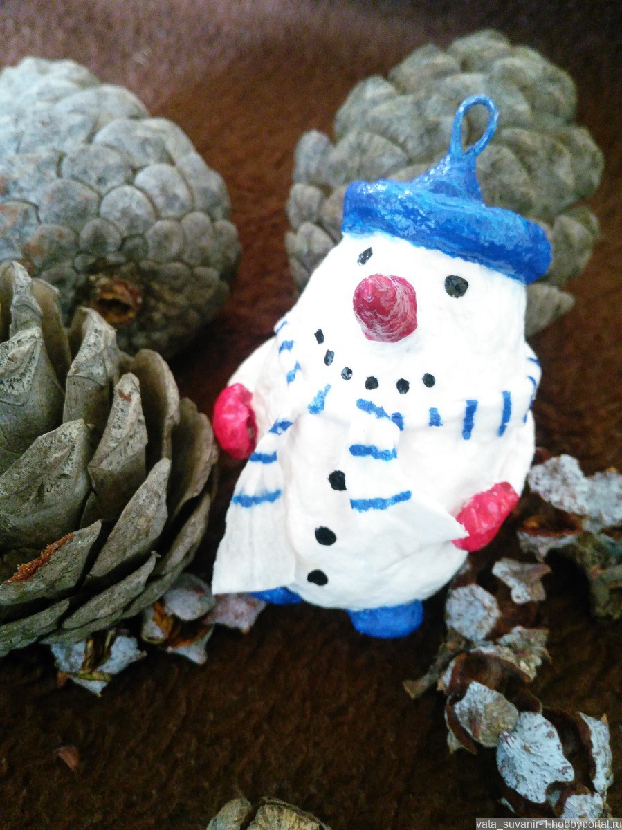 Маленький весёлый снеговик, выполнен в технике ватное папье-маше, украсит вашу новогоднюю красавицу.