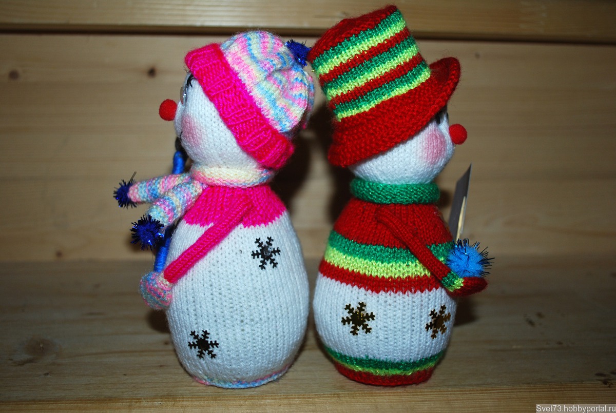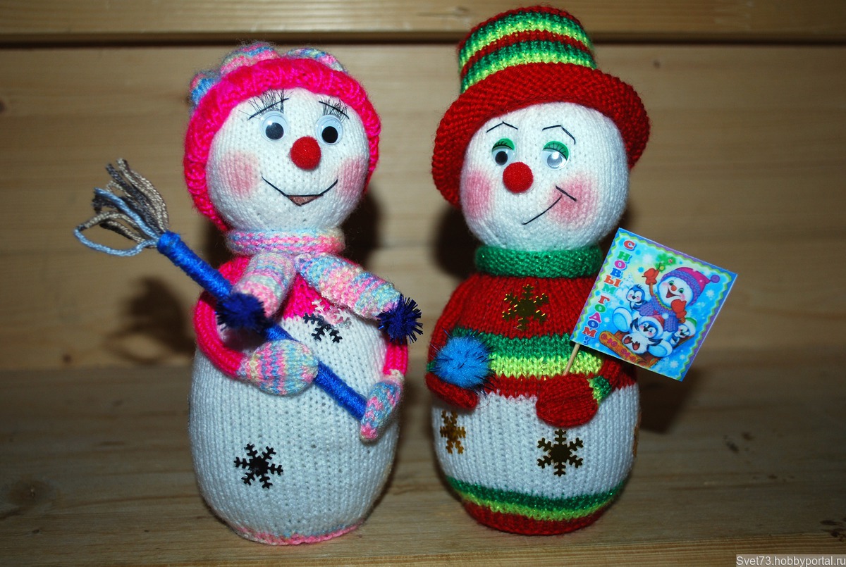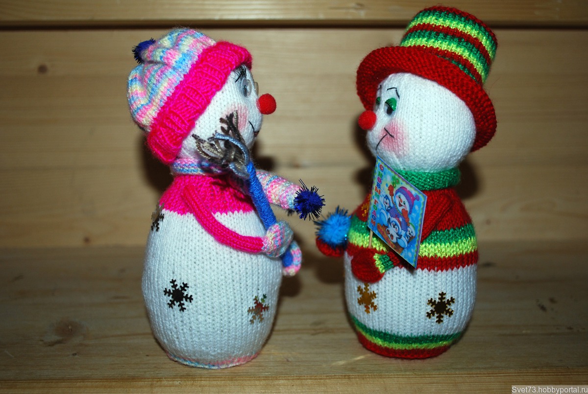 Новый год, новогодние игрушки, снеговики, подарки на новый год, вязаные игрушки, новогодние сувениры, новогодние герои, вязаные снеговики, снеговик спицами, игрушки под елку