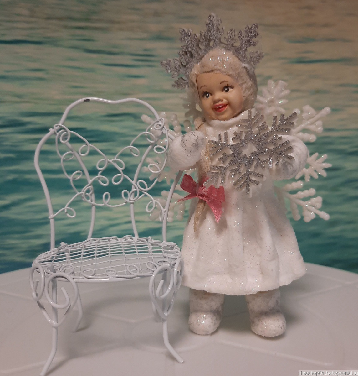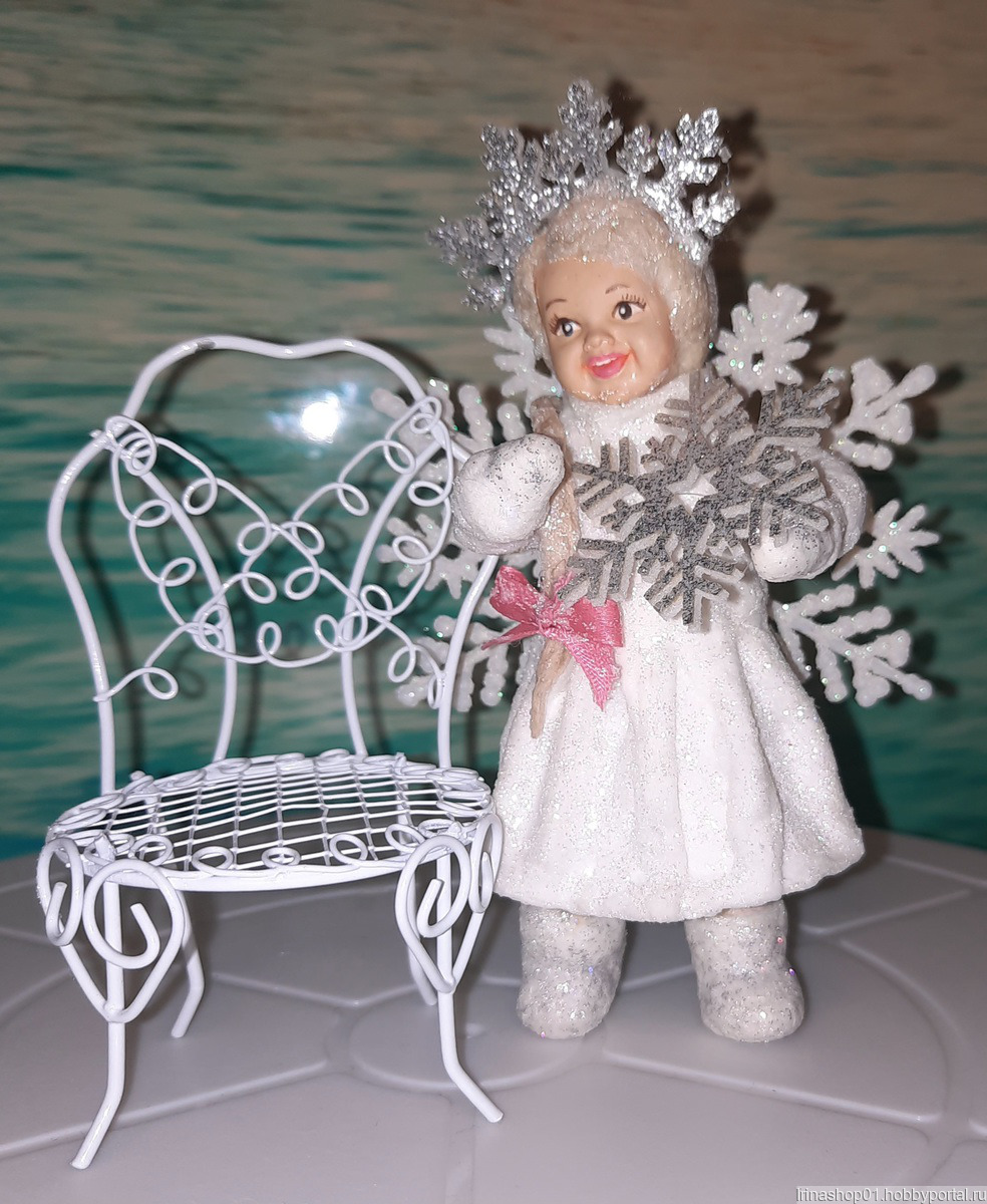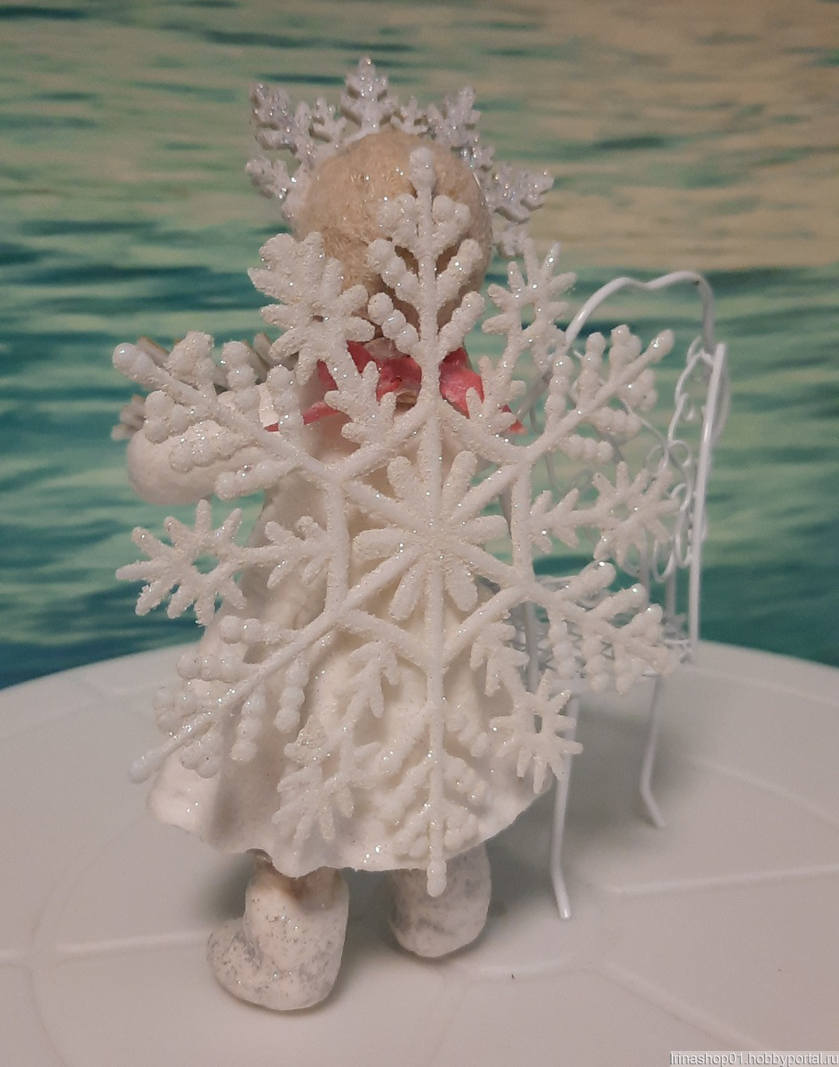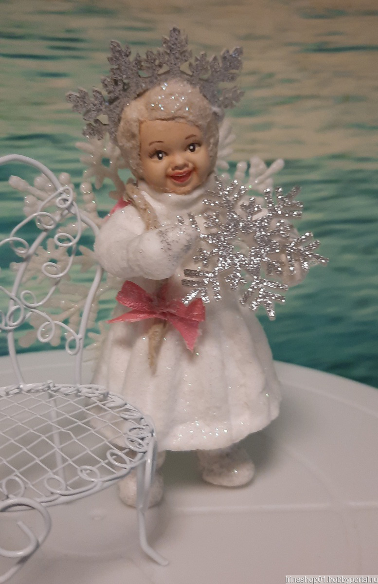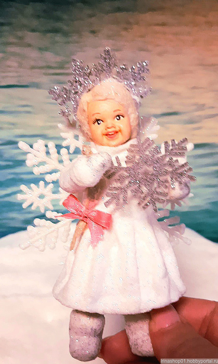 Ватная ёлочная игрушка сделана из хлопковой ваты. Личико сделано из гипса расписано акриловыми красками. Игрушка покрыта акриловым лаком