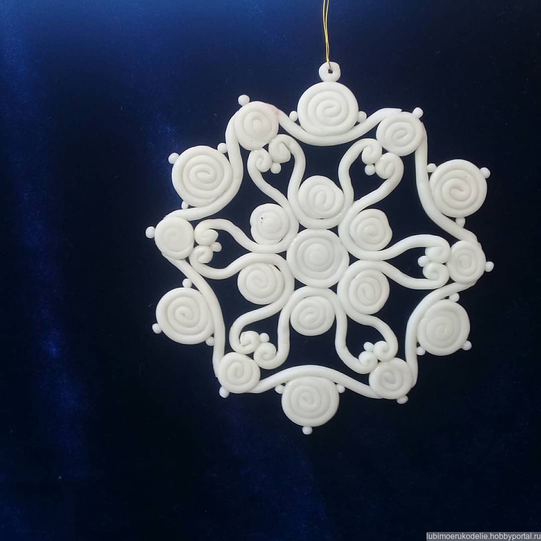 Снежинка, елочное украшение, изготовлена их холодного фарфора, ручная работа