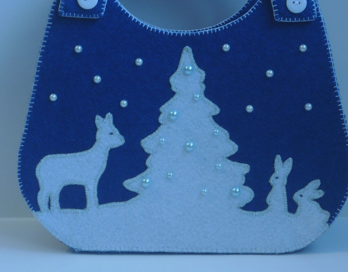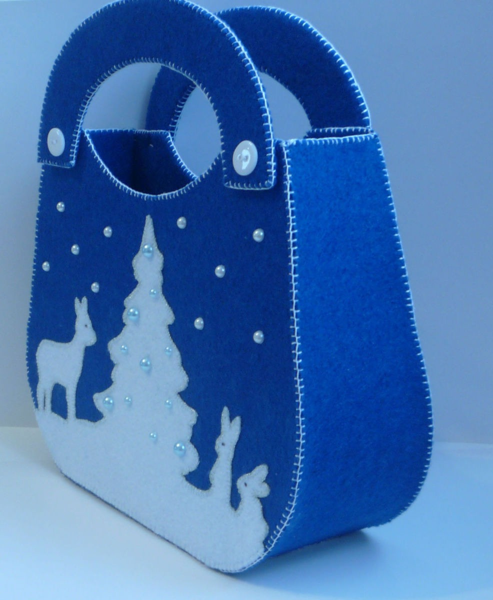 новогодний подарок, сумочка, Новый год, аппликация, фетр, сумка ручной работы, праздник, упаковка, новогодний сувенир, новогодний декор, упаковка для подарка, синий цвет, упаковка подарочная, фетровая сумка, аппликация из фетра