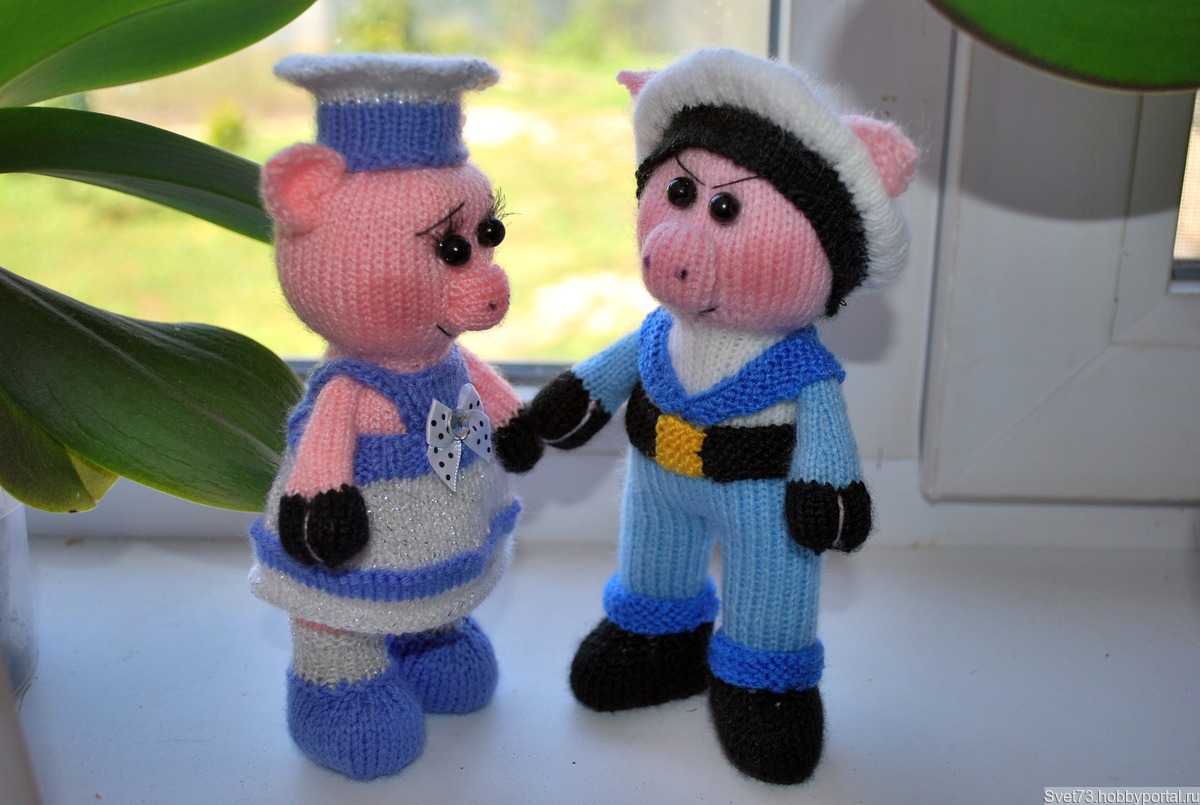 новогодние игрушки, вязаные животные, вязаные игрушки, новогодние сувениры, подарки к новому году, игрушки спицами, вязаные свинки, символ 2019 года, поросята спицами