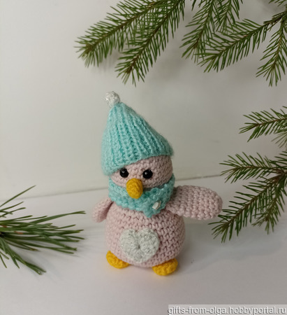 Вязаный маленький пингвинчик в шарфике и шапочке - отличный подарок и сувенир.