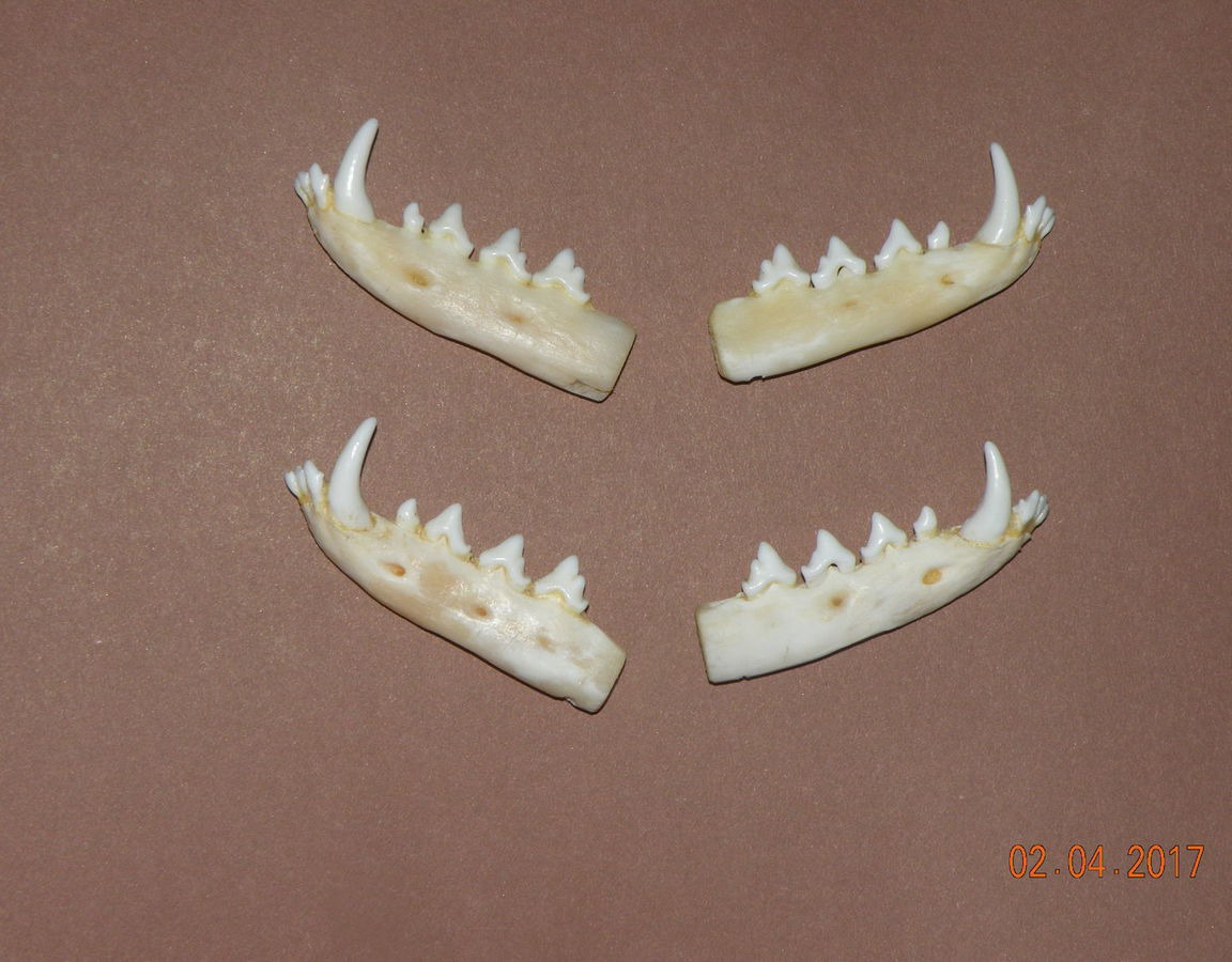 размер кости - 6-7 см количество зубов - 3 резца, 1 клык, 4 коренных