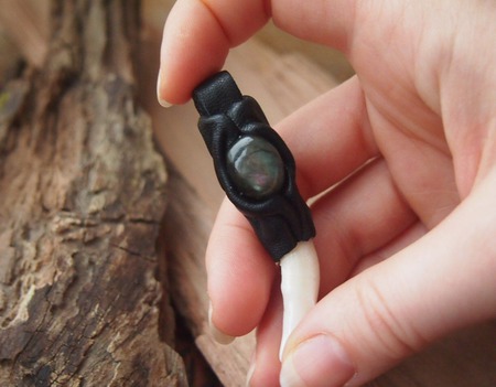 оберег, черный, кожа, лабрадорит, амулет, клык, личный оберег, волчий клык