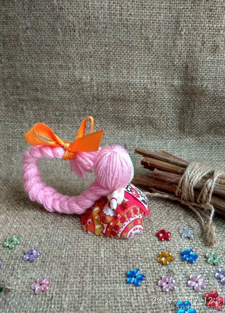 Кукла На счастье является и забавной милой куколкой, и куклой оберегом, и вашей помощницей на пути к достижению цели, и надеждой на самое прекрасное будущее. Высота 7 см. Слажена из натуральных материалов, по всем правилам. С нежностью и любовью.
