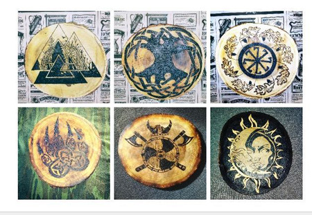Живые обереги на спилах дерева. Для дома, на стену. Пирография. Полностью ручная работа.