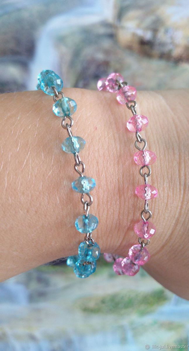 Эти нежные и милые браслеты заряжены специальным ритуалом в определенный лунный день под широкий спектр нужд: розовый браслет станет Вашим помощником в любовных делах, привлечет к Вам интерес мужского пола, убережет Вашу пару от любых невзгод; голубой браслет заряжен на привлечение финансового успеха, стабильности в денежных делах, а также на защиту Вашего финансового положения.